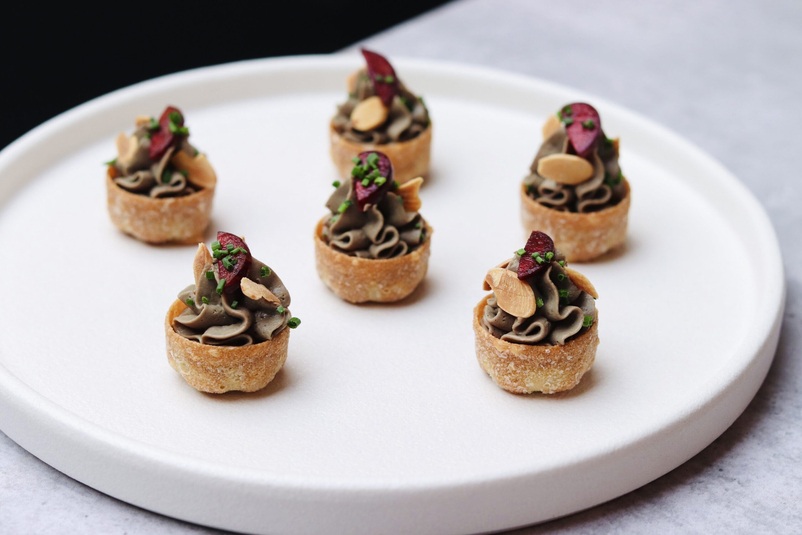 Whipped Duck & Chicken Parfait Tartlet with Cherry & Almond