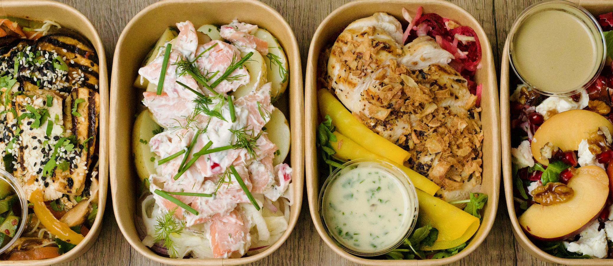 We use sustainable packaging, ensuring your team enjoys a fresh, delicious spread while keeping the environment in mind. Office lunches come ready to enjoy in smart, eco-friendly Kraft packaging, complete with biodegradable cutlery and napkin. Menus can be tailored with easy-to-eat, forkable options which are ideal for events with limited seating. With a streamlined delivery process, fresh meals arrive on time and hassle-free.